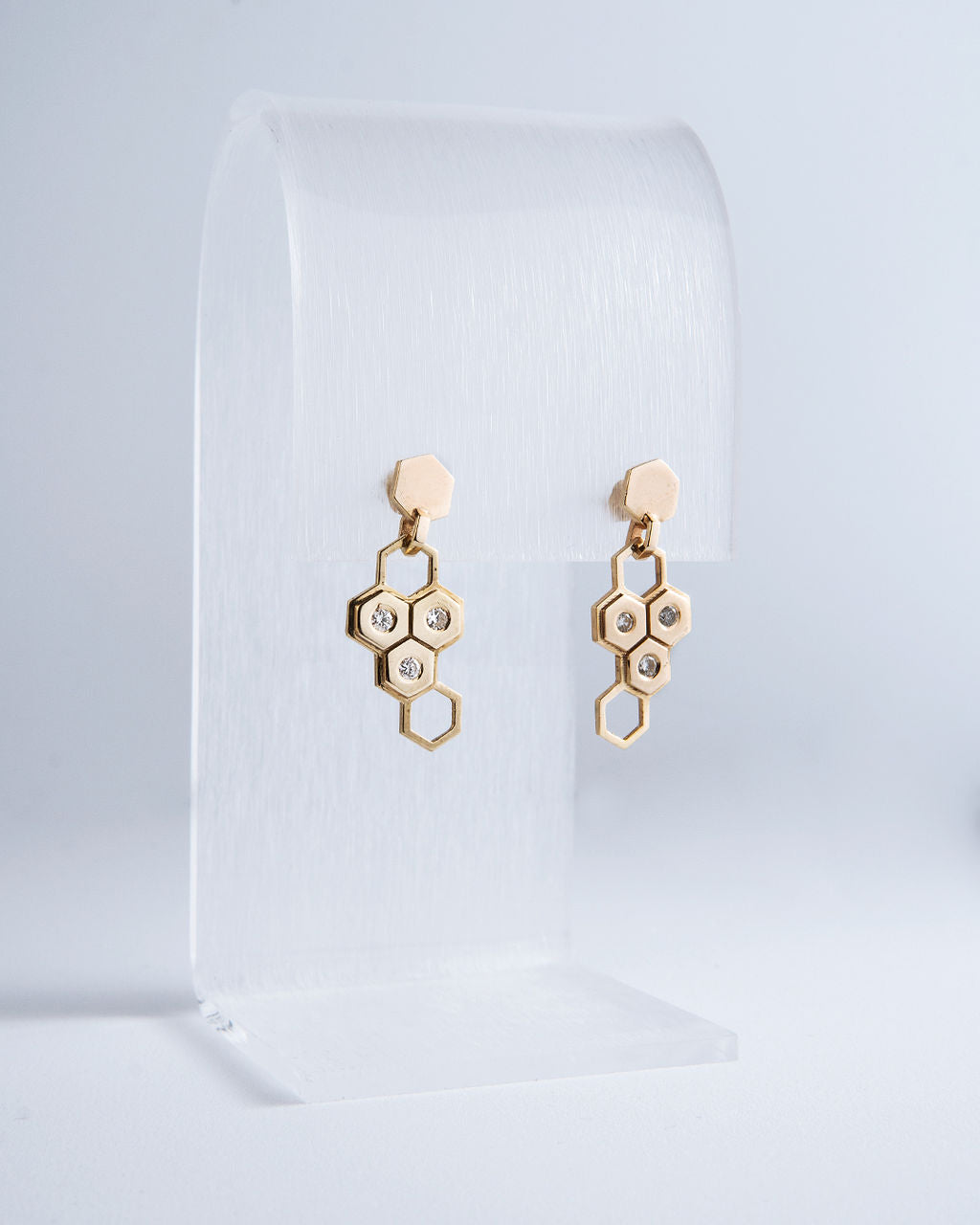 Our beautiful and elegant colmena drop earrings are perfect for every special occasion. Handcrafted in 14k solid gold and set with responsibly sourced natural diamonds.